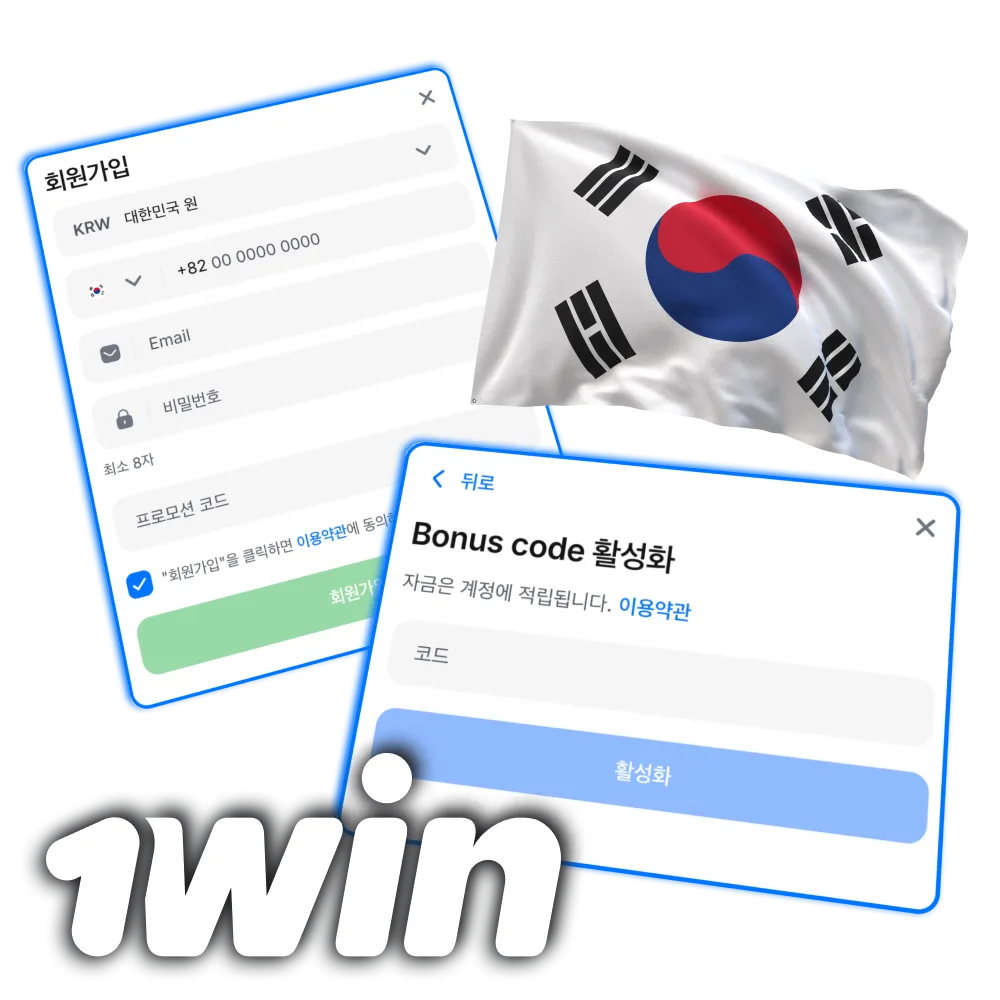 가입 버튼 클릭 후 1win 첫 입금 시 코드 보너스가 자동 활성화.